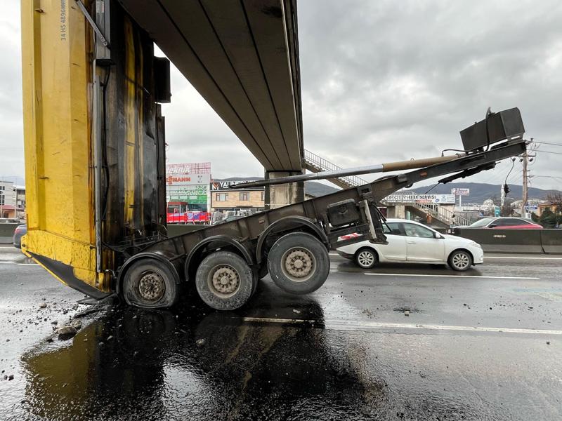 Kazanın ardından üst geçitte hasar oluştu. Kaza sebebiyle D-130 kara yolunun Yalova istikametinde trafik yoğunluğu oluştu. Ekiplerin damperi kaldırma ve kopan telleri onarım çalışmaları sürerken, trafik sol şeritten kontrollü olarak sağlanıyor.