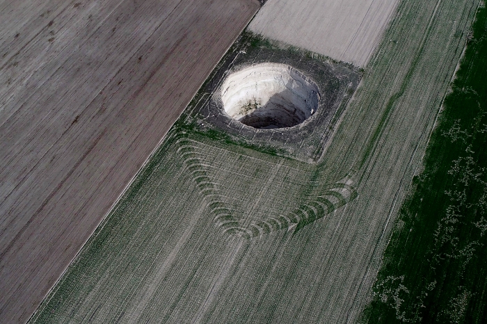 Binden fazla irili ufaklı obruğun bulunduğu Konya Ovası'ndaki dairesel oluşumlar, drone ile görüntülendi. İlçenin kuzeybatısında yer alan Çıralı Obruğu, yaklaşık 250 metre çapı ve 125 metre derinliği ile ön plana çıkıyor.