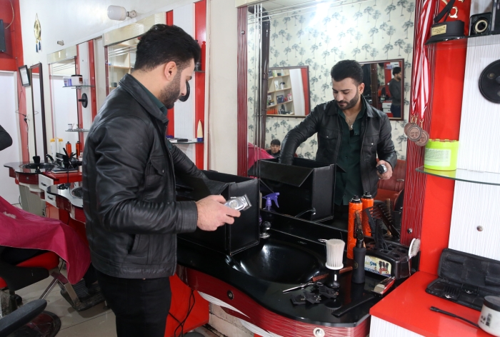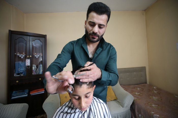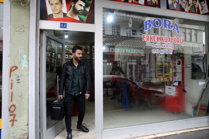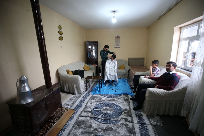 İlçe merkezinde kuaför salonu işleten Akdeniz, boş zamanlarında muhtarların öncülüğünde köylere giderek çocukları evlerinde tıraş ediyor.