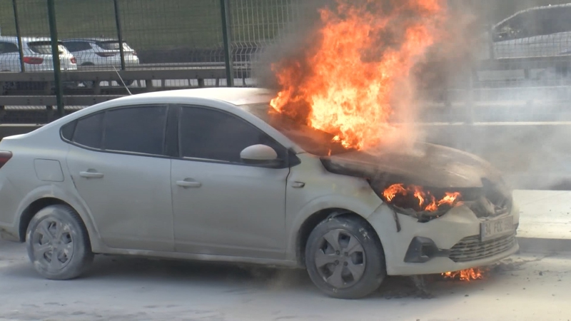 Otomobilin alev alev yandığını görenler yangın tüpleriyle aracı söndürmeye çalışsa da başarılı olamadı. Otomobilde küçük çaplı patlamalar yaşandı. O anlar kameralara saniye saniye yansıdı.