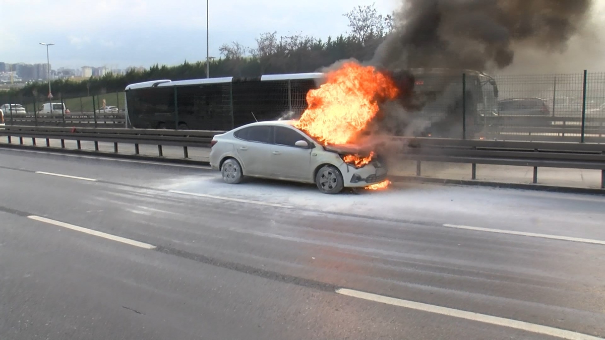 Küçükçekmece, D-100 Kara yolunda alev alev yanan otomobil itfaiye ekipleri tarafında söndürüldü. Yangın nedeniyle Avcılar istikameti bir süre trafiğe kapanırken çevredekilerin yangın tüpleriyle söndürme çalışması ve yaşanan panik anları kameraya yansıdı.
