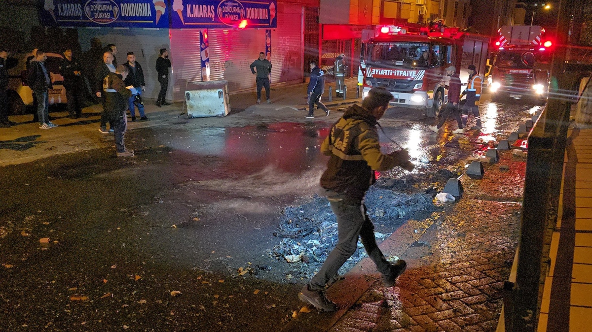 Küçükçekmece'de izinsiz gösteri yapan ve çöp konteynerlerini ateşe veren gruptan 5 kişi gözaltına alındı. İhbar üzerine bölgeye çok sayıda polis ve itfaiye ekibi sevk edildi.