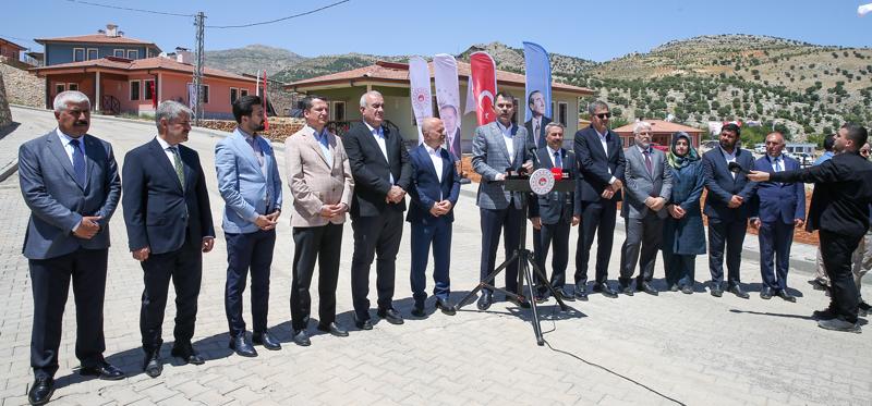 Bakan Kurum, Adıyaman Zey Köyü Afet Konutları alanında yaptığı konuşmada, köyü 135 dönümlük alanda yeniden kurduklarını ve depremzedelere teslim ettiklerini belirtti.