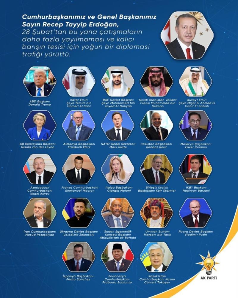 "Savaşın ilk saatlerinden itibaren ilgili devletlerin lider ve yetkilileriyle doğrudan ve yapıcı temaslar tesis eden Sayın Cumhurbaşkanımız, diyalog kanallarının açık tutulması ve gerilimin azaltılması yönünde kararlı bir diplomatik irade ortaya koymuştur."