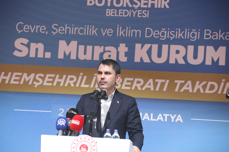 Depremin ardından, 90 gün içinde 180 bin konutun yapımına başladıklarını belirten Bakan Kurum, "Bugün bereketli topraklarıyla Anadolu'nun kalbinde bir mücevher gibi parlayan, Malatya'mızdayız. Asrın felaketinin ardından Malatya'mızın samimi, sıcak insanlarıyla, sizlerle böylesine anlamlı bir programda, bölgemizin en büyük kitap fuarında birlikte olmaktan büyük bir memnuniyet duyuyorum. Malatyalı kardeşlerimizin elinden Fahri Hemşerilik Beratını almanın, Battal Gazi'nin, merhum Cumhurbaşkanımız Turgut Özal'ın hemşerisi olmanın gururunu, heyecanını, mutluluğunu yaşıyorum. Ben bu onuru bize layık gören Malatyalılara, çok teşekkür ediyorum. Nice tarihi şahsiyetlerin irfanıyla yoğrulan Malatya'mız; gönül ve vicdan kalemizdir" dedi.