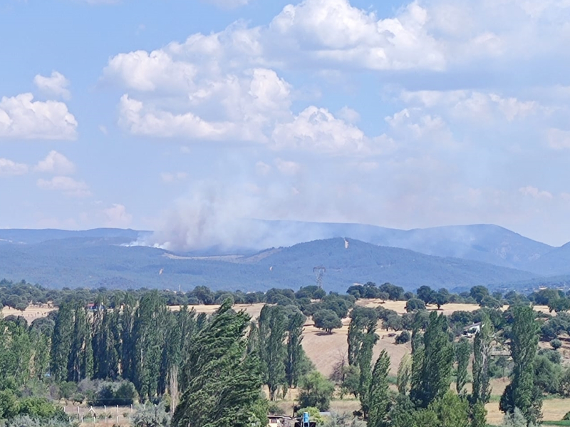 Ekipler, kuvvetli rüzgarın etkili olduğu çamlık bölgedeki yangına havadan ve karadan müdahaleyi sürdürüyor.