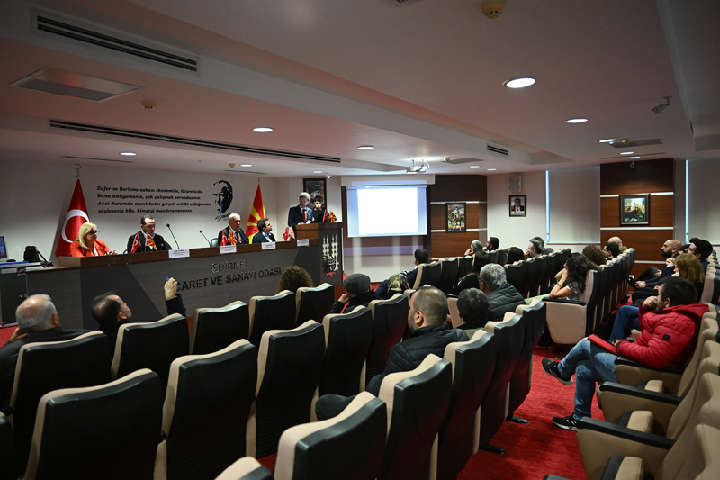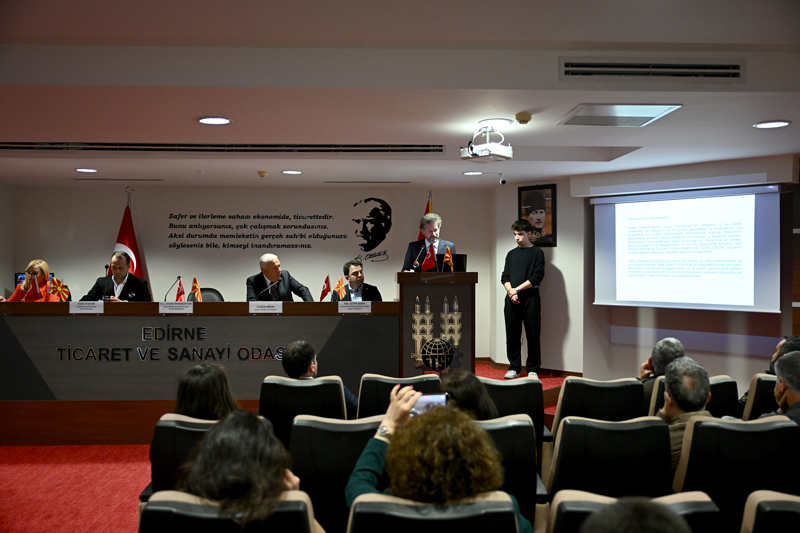 Edirne Ticaret ve Sanayi Odası (ETSO), Kuzey Makedonya Ankara Büyükelçiliği ve Edirne Fahri Konsolosluğu ortaklığında ETSO'da düzenlenen programda konuşan Kuzey Makedonya'nın Türkiye Büyükelçisi Jovan Manasijevski, Edirne ile ülkeleri arasındaki ticari işbirliğinin geliştirilmesi için çalıştıklarını söyledi.