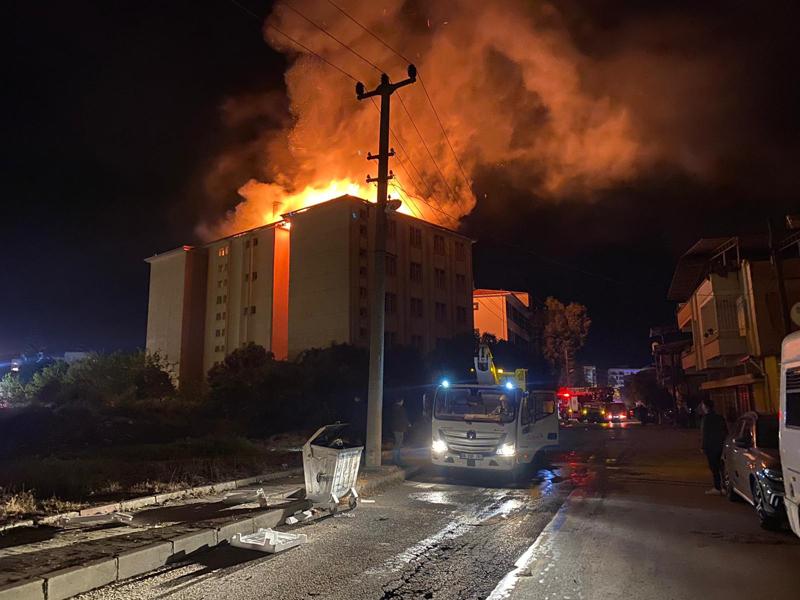 Alınan bilgiye göre, Karaçay Mahallesinde Nazilli Fen Lisesi'ne ait 6 katlı yurdun çatısında yangın çıktı.
