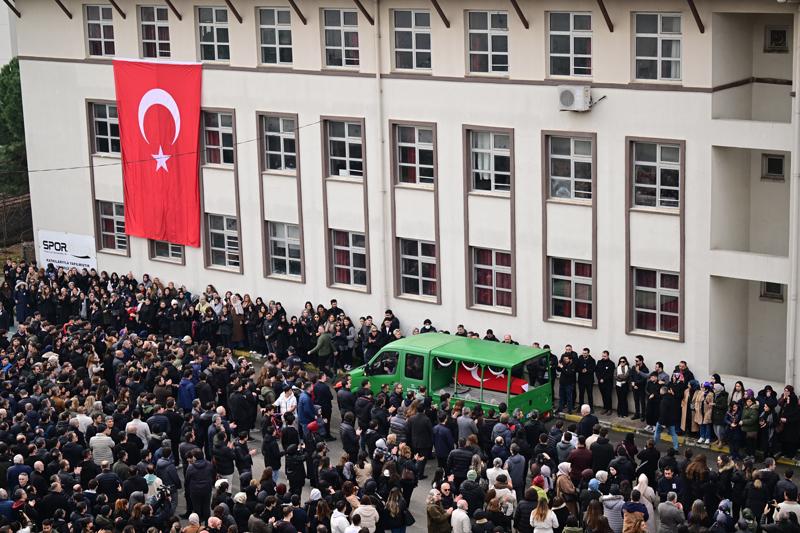 Taşdelen Borsa İstanbul Mesleki ve Teknik Anadolu Lisesi'nde 11. sınıf öğrencisi F.S.B'nin (17) bıçaklı saldırısında ağır yaralanan ve kaldırıldığı hastanede müdahaleye rağmen yaşamını yitiren öğretmen Fatma Nur Çelik'in (44) Türk bayrağına sarılı cenazesi okula getirildi.
