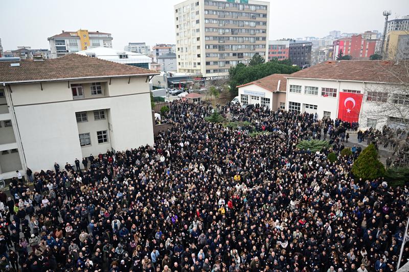 Dev Türk bayrağı asılan okulun bahçesinde yapılan törende, öğrencileri, mesai arkadaşları, meslektaşları ve eğitim sendikasının temsilcileri Çelik için dua etti.