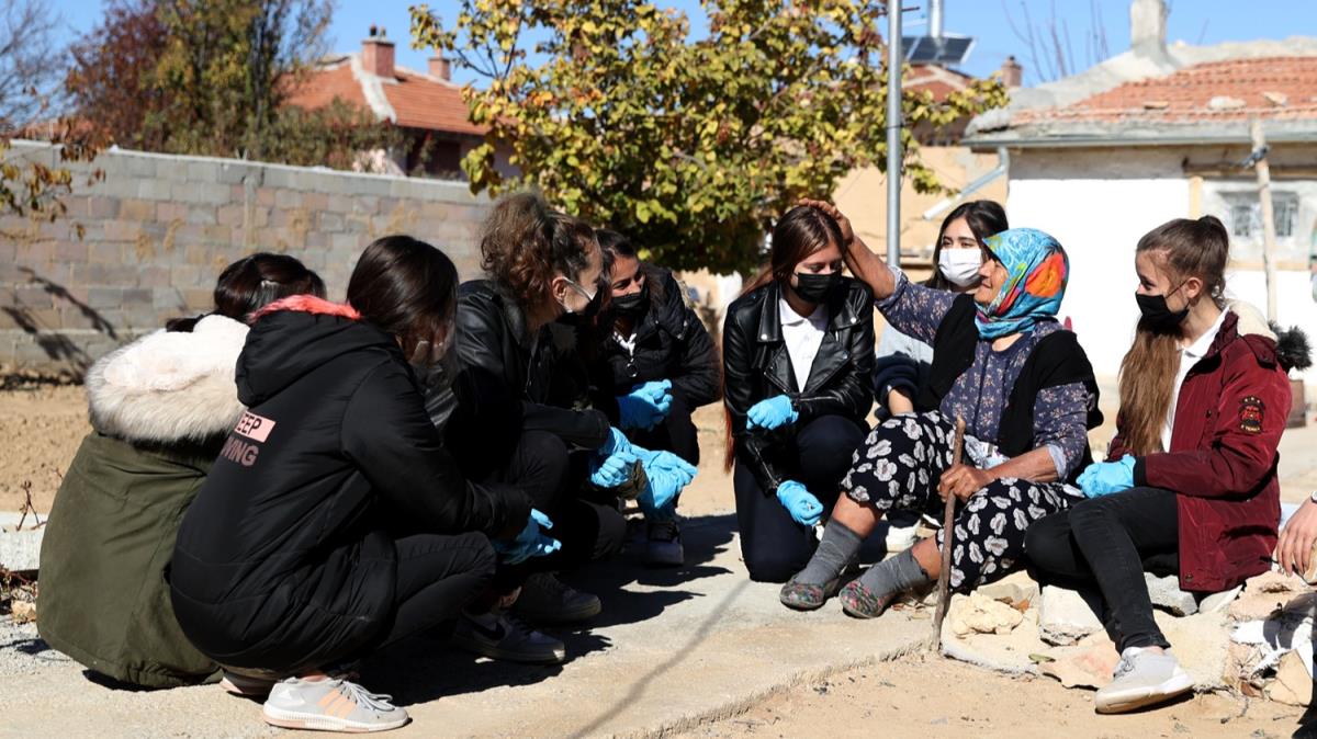 "Öğretmenimiz böyle bir proje hazırladığını söyleyince katılmak istedik. Bugün Cemile teyzemizin bahçesindeki yaprakları temizledik. Çok sevindiğini ve bizi torunları gibi gördüğünü söyledi. Sohbet ettik, hayır duasını aldık. Teyzenin kimsesi olmadığını duyduğumuzda çok duygulandık. İleride biz de bu durumda olabiliriz. Yalnız kalıp yardıma ihtiyaç duyabiliriz."