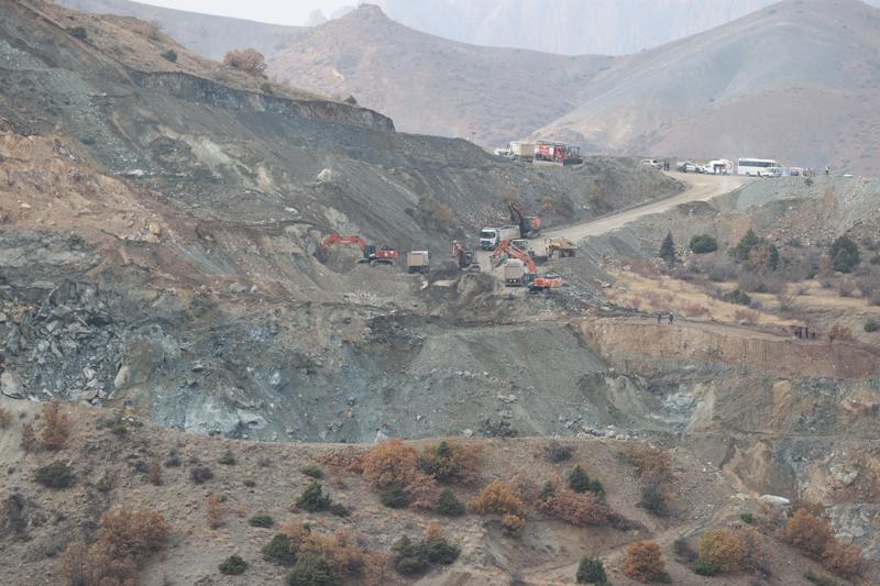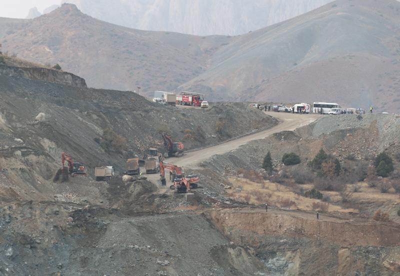 Jandarmanın tedbir amaçlı girişleri kapattığı bölgede, iş makineleri yardımıyla arama yapılıyor.