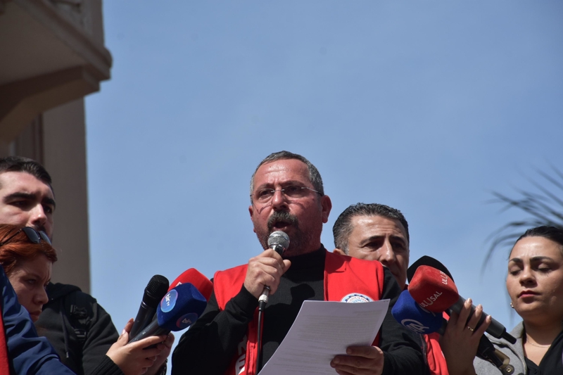 Basın açıklaması yapan Belediye İş Sendikası 2 No'lu Şube Başkanı Savaş Atalay, "Bizler su, kanal, arıtma, otobüs hizmeti, asfalt, mezarlık ve itfaiye hizmetlerini sabahın kör karanlığından gece yarılarına, yaz demeden kış demeden günün 24 saati durmaksızın yerine getiren emekçileriz. Bizler, hizmetlerin bir gün dahi aksamaması için görev ve sorumluluk bilinciyle 7 gün 24 saat var gücüyle çalışan emekçileriz. İzmir'in her evinde, her sokağında, her caddesinde emekçilerin alın teri ve emeği var. Emekçiler, ülkemizin, belediyemizin her sıkıntılı döneminde kurumların daha verimli çalışması için var gücümüzle çaba harcayan, fedakarlık yapanlardır. Ancak bu kadar önemli ve vazgeçilmez olan bu hizmetleri yapan bizler, yaşanan ekonomik sıkıntılar ve enflasyon altında eziliyoruz. Belediye yönetimi sesimizi duymuyor, yaşadığımız yoksulluğu, geçim sıkıntısını görmüyor. Belediye yönetiminin sorunlarımıza karşı duyarsızlığı karşısında öfkeleniyoruz. Biz emekçiler, huzur içinde çalışmak, alın terimizin karşılığını almak istiyoruz" dedi.