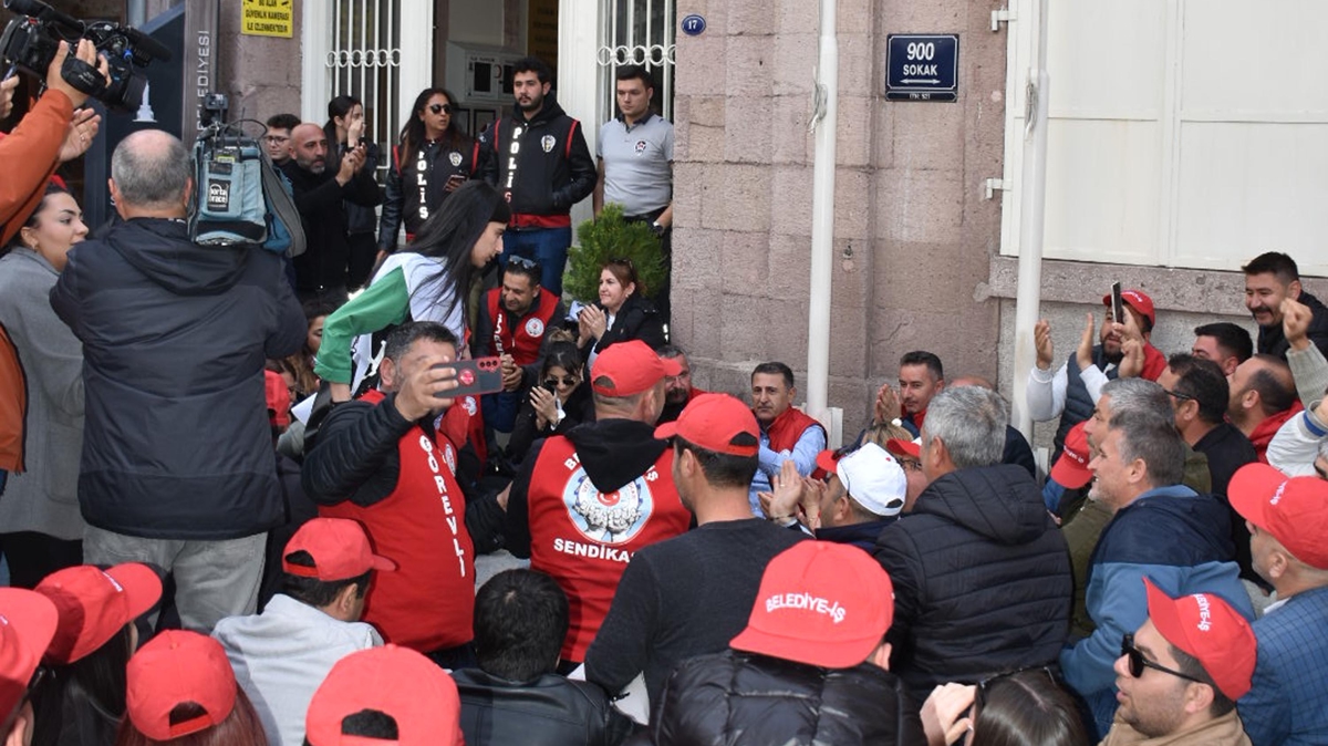 İzmir Büyükşehir Belediyesi'nin İZSU, İZDOĞA, İZBETON ve İZULAŞ şirketlerinde örgütlü Türk İş'e bağlı Belediye İş Sendikası ile işveren arasında ocak ayından bu yana süren ve 6 bin işçiyi ilgilendiren toplu iş sözleşmesi görüşmelerinde anlaşma sağlanamadı. Sendikaya üye işçiler, kısa süre önce yarım gün, ardından da 2 saat iş bıraktı. Sonrasında taraflar tekrar masaya oturdu ancak sonuç çıkmadı. Bunun üzerine Belediye İş Sendikası yeniden eylem kararı aldı. İzmir Büyükşehir Belediyesi'nin çeşitli birimlerinde görev yapan binlerce işçi, Konak Pier önünde toplandı. Ardından belediye binasına yürüyüşe geçti. Müzikler ve türküler eşliğinde halaylar çeken kalabalık, 'sadaka değil toplu sözleşme', 'direne direne kazanacağız', 'hak, hukuk adalet', 'zafer emekçinin olacak' sloganları atarak belediye önüne geldi.