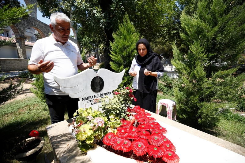 Antalya'nın Serik ilçesi Belek Mahallesi'nde 2022'de sahipsiz köpeklerden kaçarken kamyonun altında kalarak yaralanan ve kaldırıldığı hastanede yaşamını yitiren Mahra Melin Pınar'ın annesi Derya Pınar, kızının kabrini düzenli olarak ziyaret ediyor.