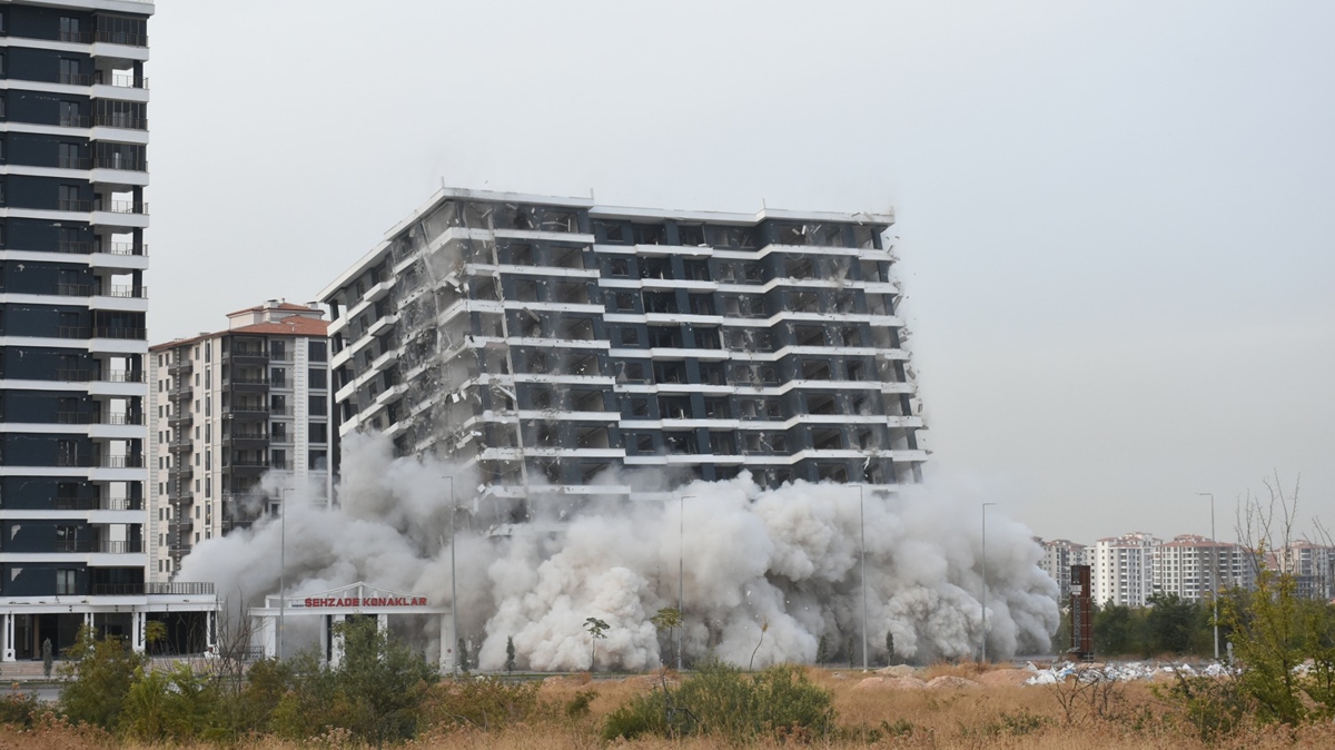 Depremlerde ağır hasar alan Yeşilyurt ilçesi Bostanbaşı Mahallesi'ndeki 14 katlı binada inceleme yapan uzman ekip, yapının belirli bölümlerine 140 kilogram patlayıcının bulunduğu 1570 kapsül yerleştirdi.