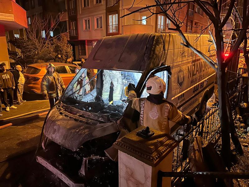 Fındıklı Mahallesi Fırat Sokak'ta park halindeki ev taşıma ve nakliye firmasına ait minibüs ve asansörlü çekici kamyonet, bilinmeyen nedenle yanmaya başladı.