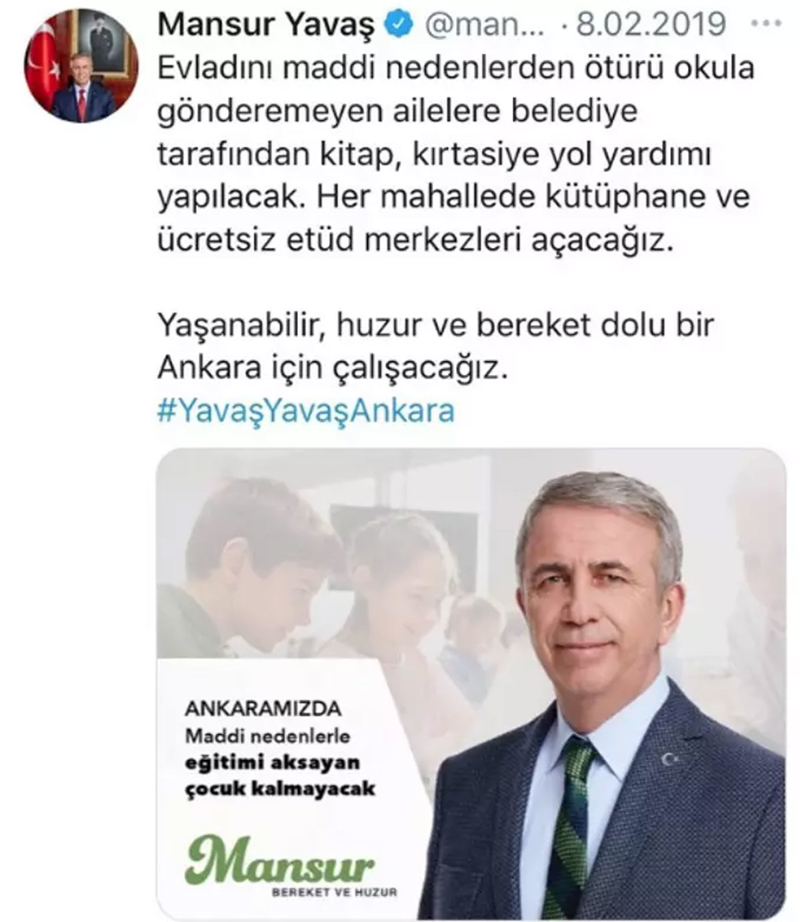 2019'da her mahalleye en az bir kreş inşa edilecek sözünü veren Mansur Yavaş, bu vaadini de gerçekleştirmedi. Verdiği sözü tutmamakla kalmayan Yavaş, aynı vaadini 2024 yılı için de tekrar etti.