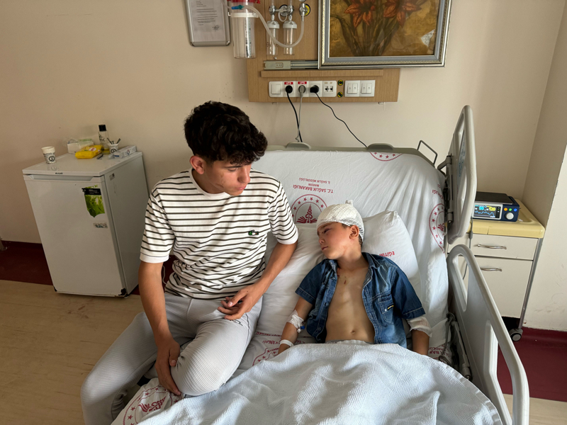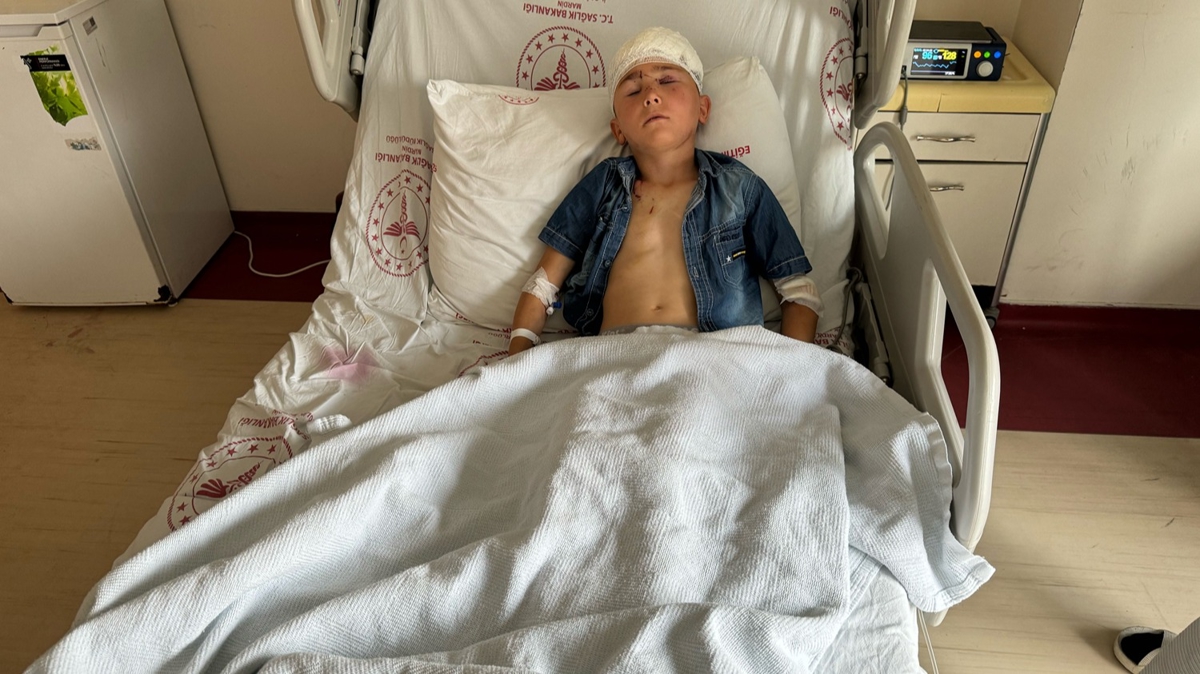 Başından ve vücudunun çeşitli yerlerinden yaralanan çocuk, çevredekilerin yardımıyla kurtarıldı.