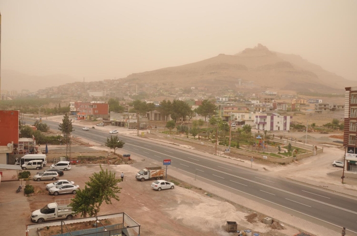 Mardin kent merkezi ile Derik başta olmak üzere ilçelerinde kuvvetli rüzgarla birlikte Suriye'den gelen toz bulutu, hayatı olumsuz etkiledi.