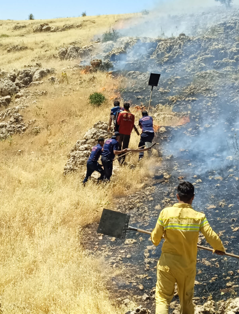 Mardin'in Artuklu ilçesi kırsal Çağlar ve Acar mahalleleri arasındaki alanda çıkan örtü yangınına itfaiye ekipleri 5 araçla, Orman İşletme Şefliği ekipleri 3 araçla, jandarma ekipleri de 3 TOMA ile müdahale etti. Bölgenin dağlık olması nedeniyle ilerlemekte güçlük çeken ekipler, köylülerin de desteğiyle 'patpat' denilen tarım araçlarını da kullandı. Saat 07.30'da başlayan yangın, 6 saatlik çalışmanın ardından kontrol altına alındı. Ekiplerin hasar tespiti ve yangının çıkış nedeninin belirlenmesi için çalışmaları sürüyor.