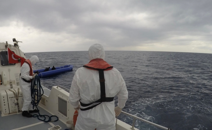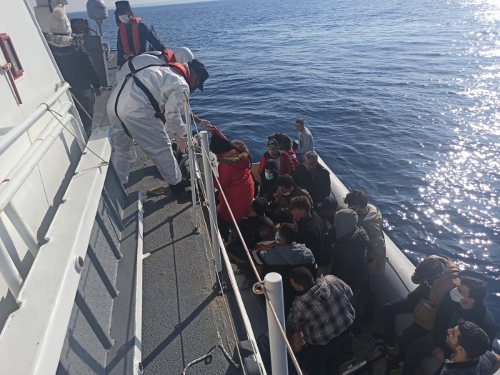 Sahil Güvenlik Komutanlığı ekipleri, farklı zamanlarda beş lastik botta düzensiz göçmenin bulunduğu bilgisinin alınması üzerine bölgeye hareket etti.