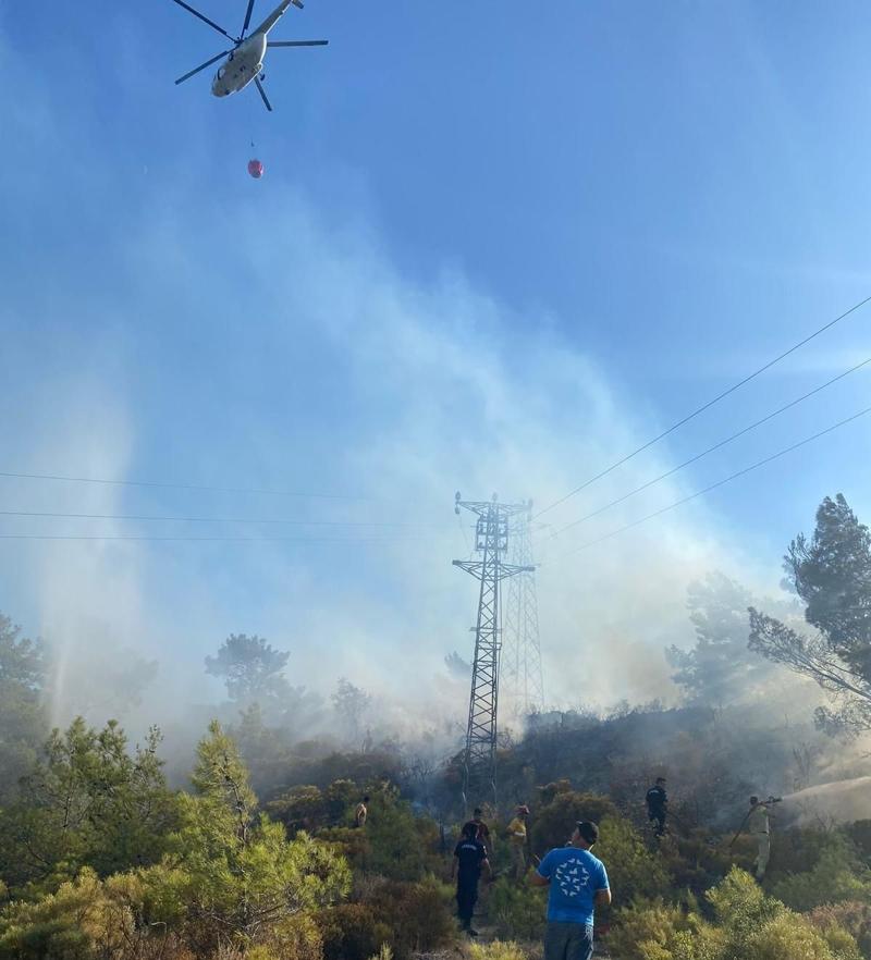 Enerji nakil hattından çıktığı tahmin edilen yangına havadan ve karadan etkili şekilde müdahale edildi.