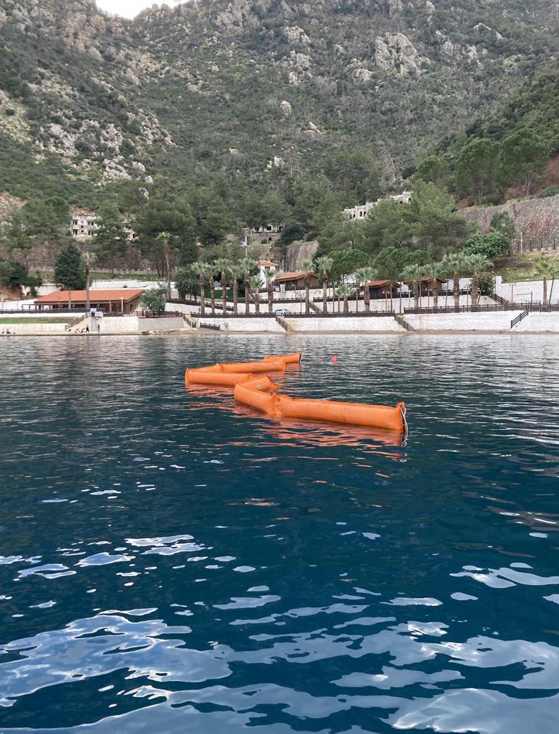 Ekipler tarafından tekneden yakıt sızıntısının yayılmaması için önlem alındı.