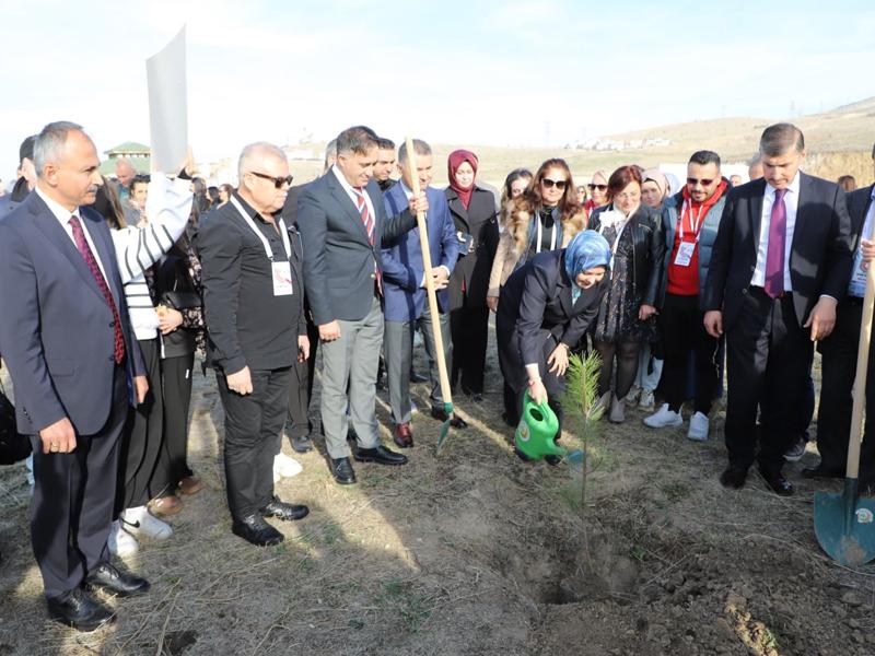 Daha sonra öğretmen ve öğrenciler, Öğretmen Hatıra Ormanı'na fidan dikti.