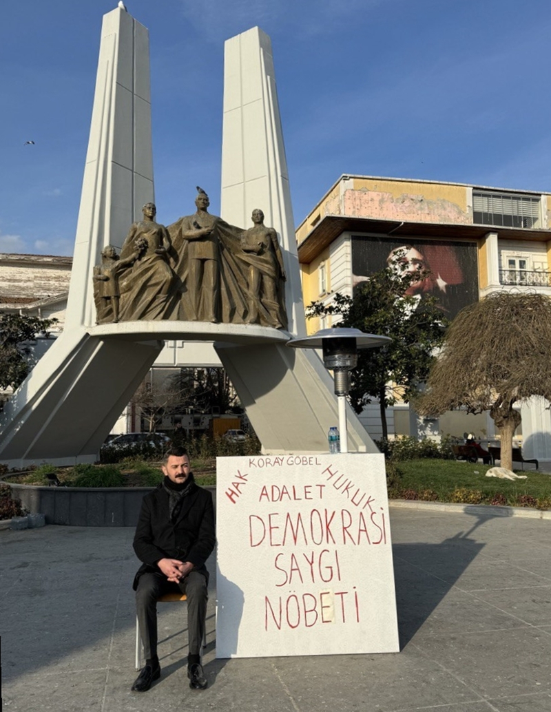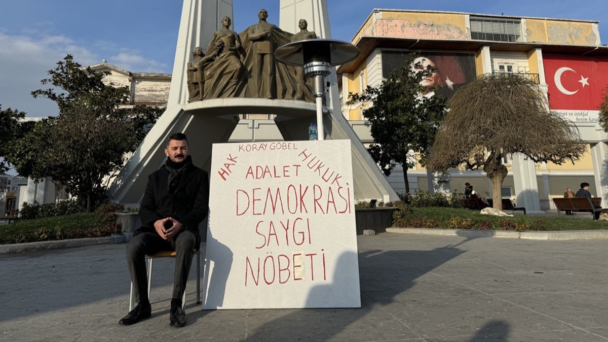 Bakırköy Özgürlük Meydanı'nda üzerinde, "Hak, hukuk, adalet, demokrasi, saygı nöbeti" yazılı pankartla oturma eylemi başlatan Göbel, gazetecilere yaptığı açıklamada, yanlışlık düzeltilene kadar eylemini sürdüreceğini söyledi.