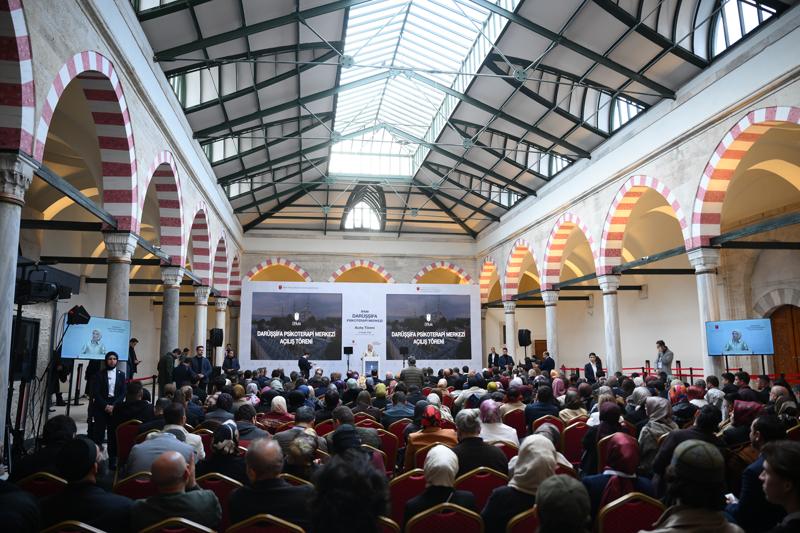 Emine Erdoğan, Süleymaniye'deki İHÜ İPAM Darüşşifa Psikoterapi Merkezi'nin açılışında yaptığı konuşmada, Kanuni Sultan Süleyman'ın vizyonundan, Mimar Sinan'ın ellerinden çıkan merkezde katılımcılarla bir araya gelmekten mutluluk duyduğunu söyledi.