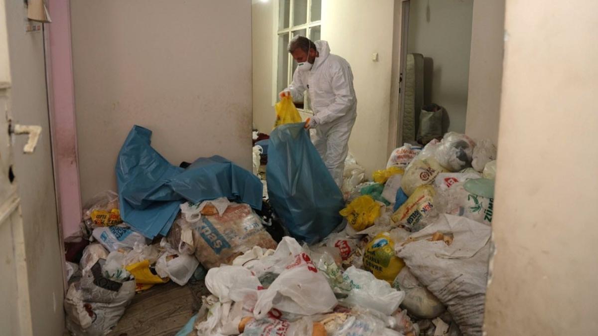 Ekipler, ikamette uzun süredir çöp biriktirildiğini belirledi.