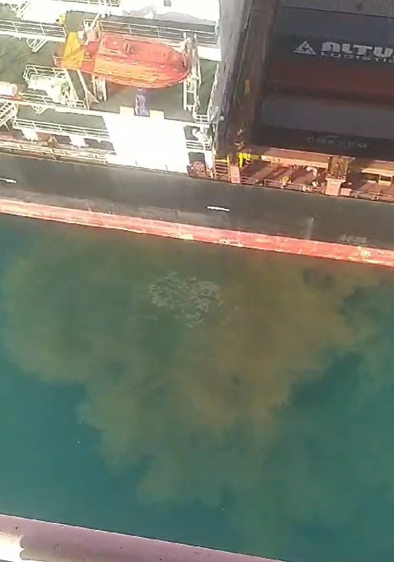Elektronik Gemi Denetim Sistemi üzerinden yapılan denetimde, liman içerisinde bir geminin paslı ve yağlı suyu denize bıraktığını belirledi.