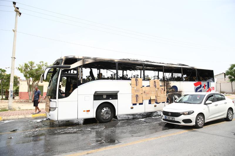 Mersin'de seyir halindeki yolcu otobüsü yandı.