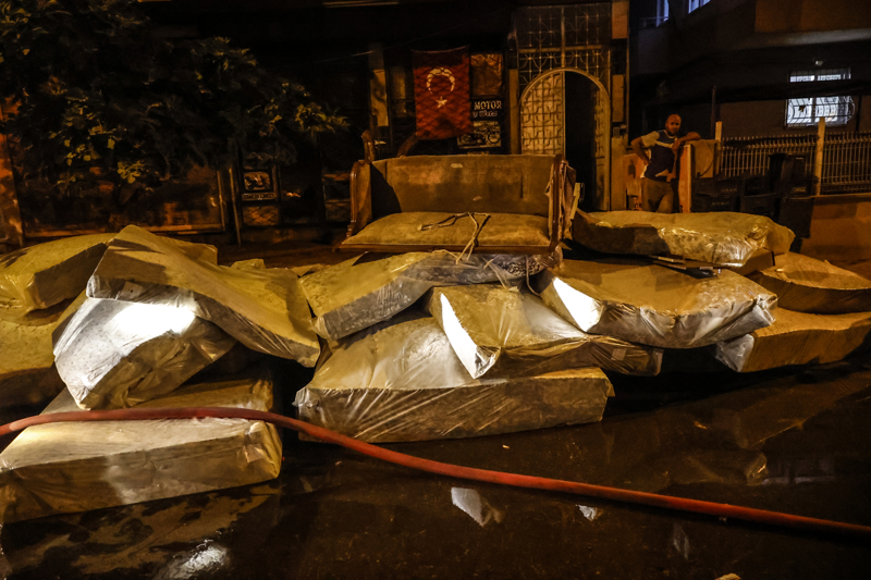 Yangında atölyedeki yatak ve bazalar zarar gördü, iş yerinin üst katındaki ev ve sokaktaki minibüste hasar oluştu.