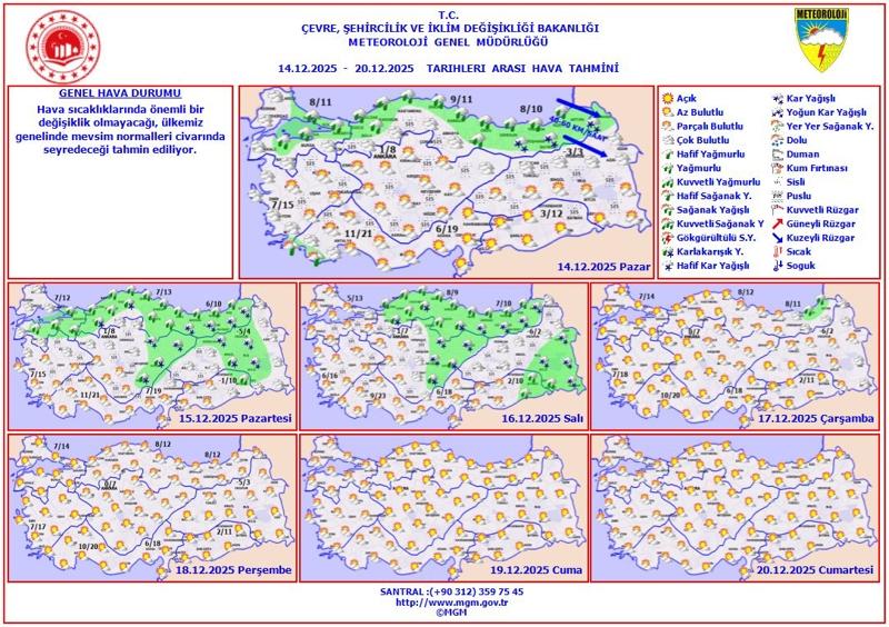 14 ARALIK PAZAR İL İL HAVA DURUMU RAPORU