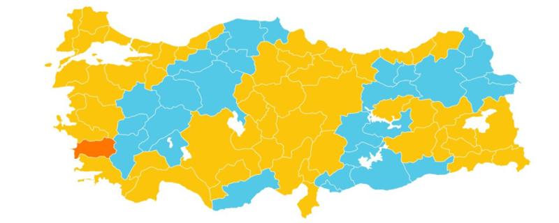 METEOROLOJİ'DEN 53 İLE UYARIMeteoroloji Genel Müdürlüğü, Aydın için turuncu; İstanbul, Antalya, Bursa, Konya ve Samsun'un aralarında olduğu 53 il için sarı kodlu uyarı yayımladı.