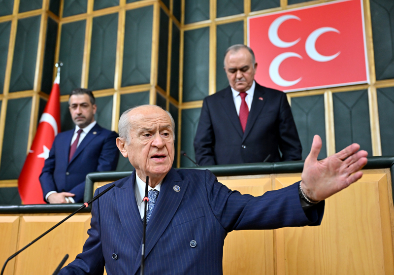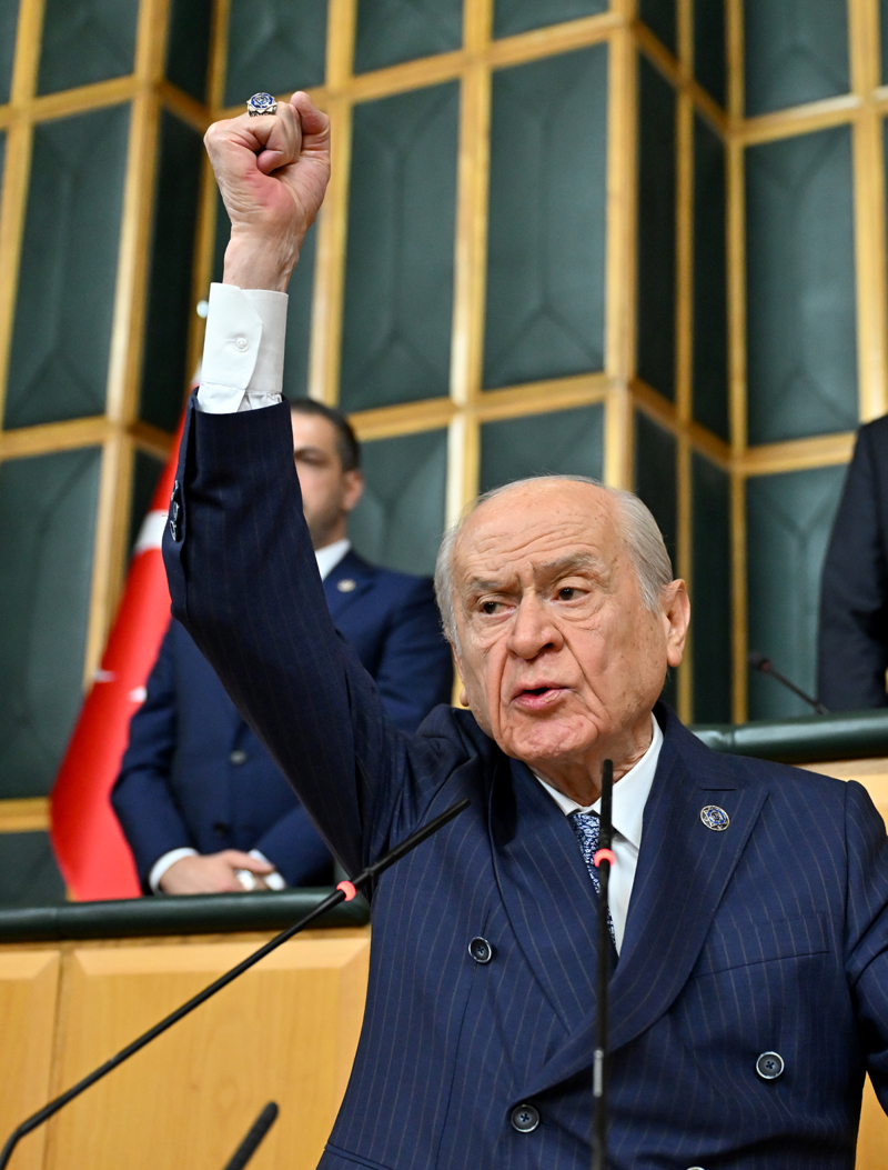 MHP Lideri Bahçeli, TBMM'de partisinin grup toplantısında konuştu. Bahçeli, bugün kitabın ortasından ve hiçbir yoruma ihtiyaç bırakmayacak netlikte konuşacağını belirterek, "Bugün milli birlik ve kardeşlik duygumuzun üzerine gerilmek istenen yabancı menşeli örtüyü kaldıracağım. Alışıldık söylem kalıplarından az da olsa taşmanın vakti geldiyse, o vakit bu vakittir. Mevcut ve muayyen gerçeklere dayanarak muazzez milletimizin ayak bağlarını kalıcı olarak çözmenin kim bilir belki de ilk adımını atmış olacağım" dedi.