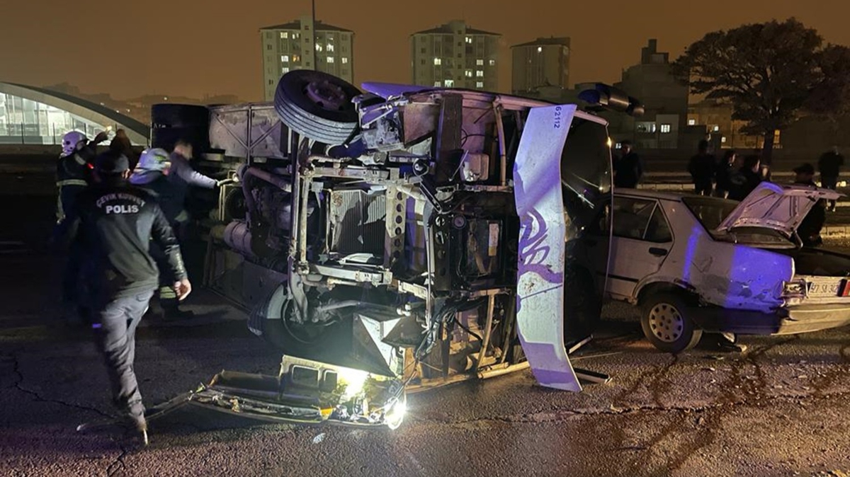 Devrilen midibüsteki 5 çevik kuvvet personeli yaralandı.