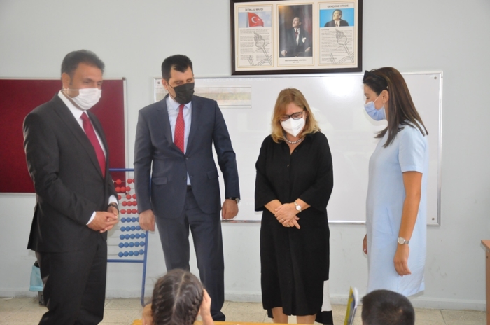 Öğrencileri sınıflarında ziyaret eden Aşkar ve beraberindekiler, onlara çeşitli hediyeler verdi. Ardından protokol üyeleri, öğrencilerle okul bahçesinde çam fidanı dikti.