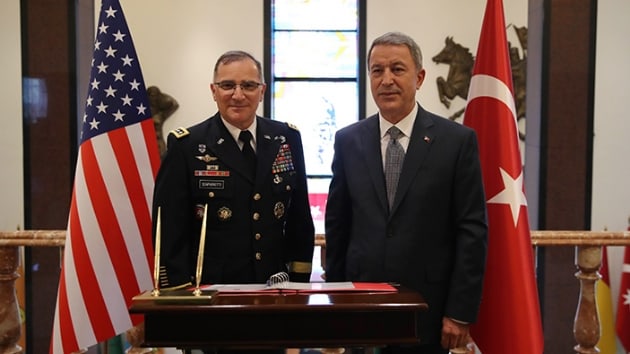 Bakan Akar, daha sonra Scaparrotti ile makam odasında baş başa görüştü. Scaparrotti'nin, yeni görevi dolayısıyla Akar'a tebrik ziyaretinde bulunduğu belirtildi.