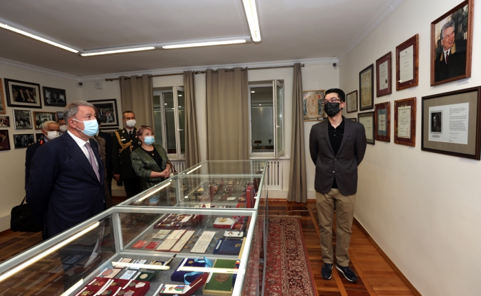 Akar, Aytmatov'un ödüllerinin yanı sıra Cumhurbaşkanı Recep Tayyip Erdoğan ve 9. Cumhurbaşkanı Süleyman Demirel ile çekilen fotoğraflarının bulunduğu odayı da gezdi.