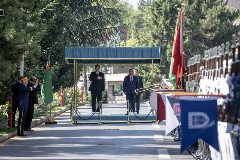 İki ülke marşlarının çalınmasının ardından konuk Bakan Gündogdiyev, onur kıtasını selamladı.