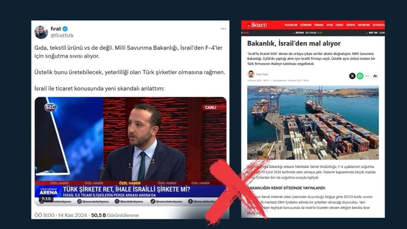 Dezenformasyonla Mücadele Merkezi tarafından yapılan açıklamada, "Bazı basın yayın organlarında yer alan, "Milli Savunma Bakanlığı, Eylül'de yaptığı alım için Türk firmasının ihaleye katılmasını engelledi, İsrailli firmayı seçti" iddiası doğru değildir. Türkiye, İsrail ile ilgili ihracat ve ithalat işlemlerini 2 Mayıs 2024 tarihinden itibaren tüm ürünleri kapsayacak şekilde tamamen durdurmuştur. İddiaya konu malzemenin İsrail firmasından alınacağının duyurulduğu ve Türk firmalarının engellendiği iddiaları kesinlikle gerçeği yansıtmamaktadır. Hava Kuvvetleri Komutanlığı ihtiyacı olan F-4 uçaklarının soğutma sıvısı tedariki konusunda defalarca ihale açılmış olmasına rağmen teklif gelmemesi nedeniyle tedarik gerçekleşmemiştir. Milli Savunma Bakanlığı tarafından yalan haberle ilgili gerekli hukuki işlem başlatılmıştır. Kamuoyunu manipüle etmeye yönelik asılsız iddialara itibar etmeyiniz" denildi.