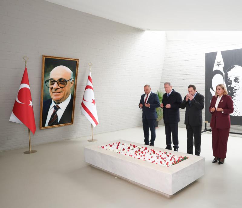 Anıt mezarda saygı duruşunda bulunan ve anıt özel defterini imzalayan TBMM Milli Savunma Komisyonu Başkanı Hulusi Akar, Serdar Denktaş ile bir süre sohbet etti.