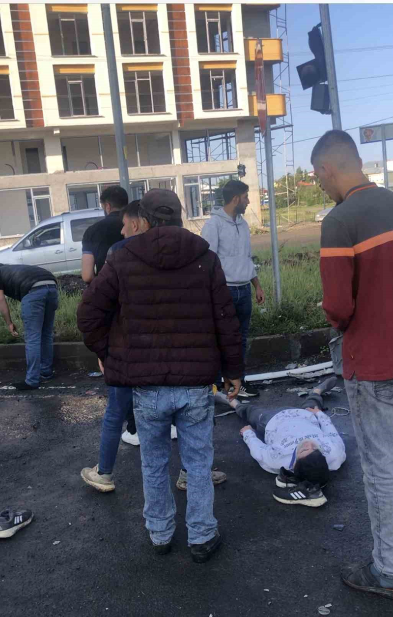 İnşaat işçilerini taşıyan minibüsle otomobil kavşakta çarpıştı. Minibüsünün camlarından fırlayan yaralılar yola savruldu.