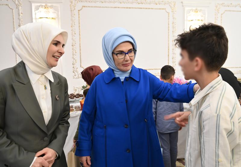 Cumhurbaşkanı Erdoğan ve eşi Emine Erdoğan, Vahdettin Köşkü'ndeki programda çocuklarla sohbet ederek onlarla yakından ilgilendi.