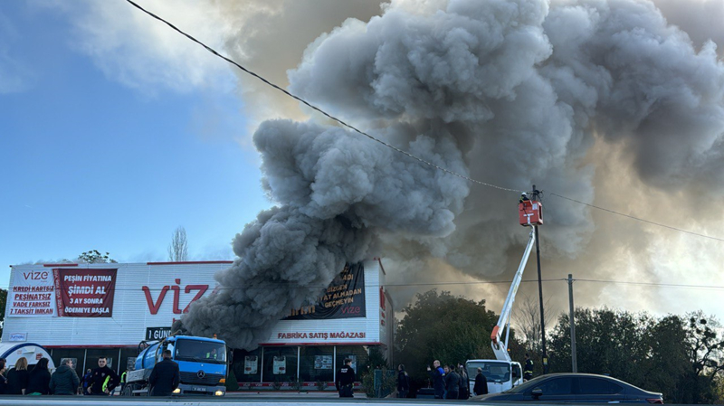 Kavaklı beldesi kara yolundaki mobilya mağazasında henüz belirlenemeyen nedenle yangın çıktı.
