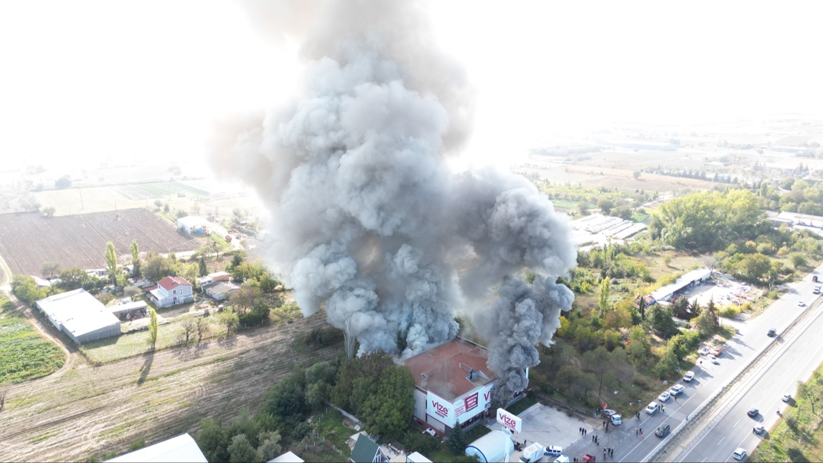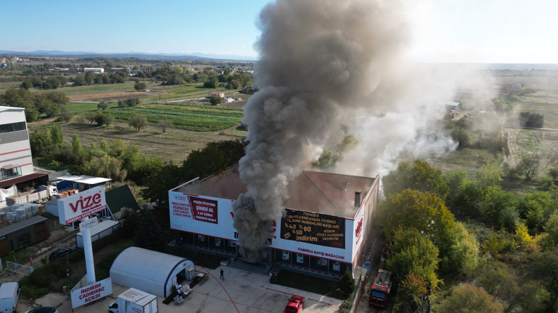Kırklareli'nde mobilya mağazasında çıkan yangına müdahale ediliyor.