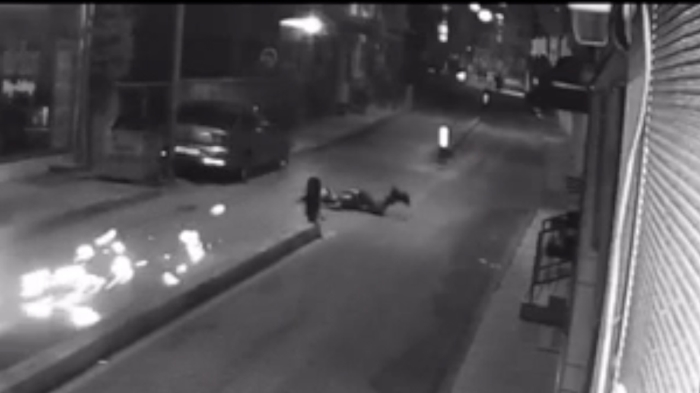 Öte yandan kaza, çevredeki bir iş yerinin güvenlik kamerasınca kaydedildi.